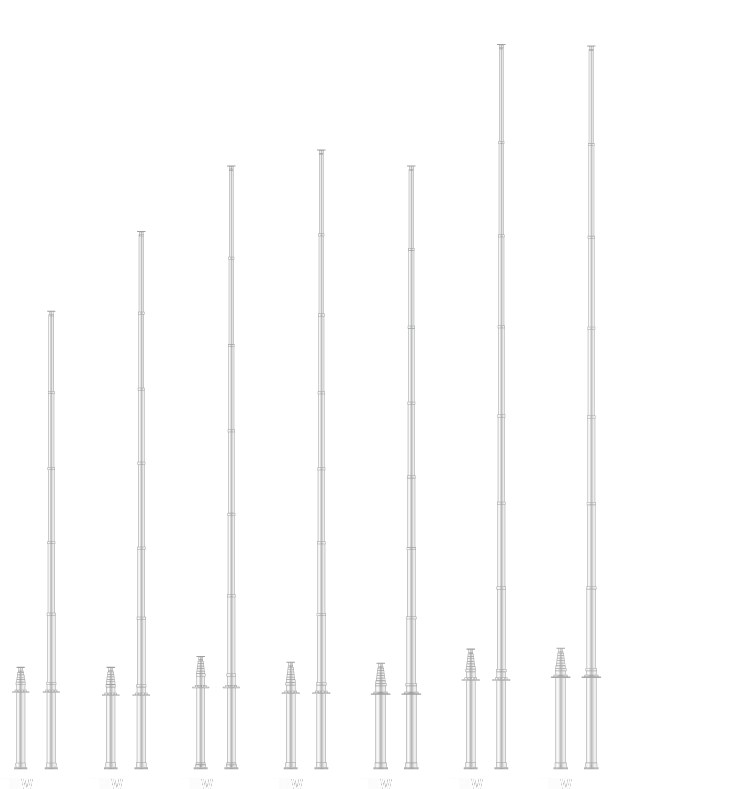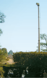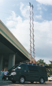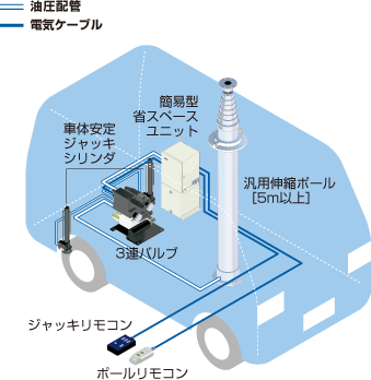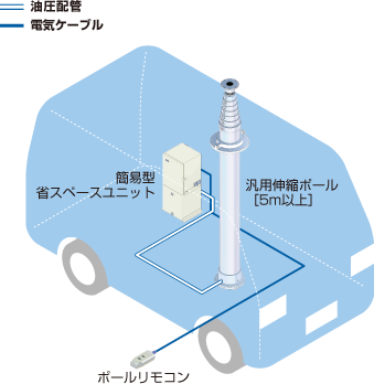 高強度のポールは耐振動性、耐風速性に優れ、油圧駆動方式により正確な位置制御が可能です。