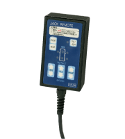 ジャッキ操作用のリモコン。ON/OFF操作の他、左/右単独での伸長・収納ができます。4本使用時は前後ジャッキの切換ができます。