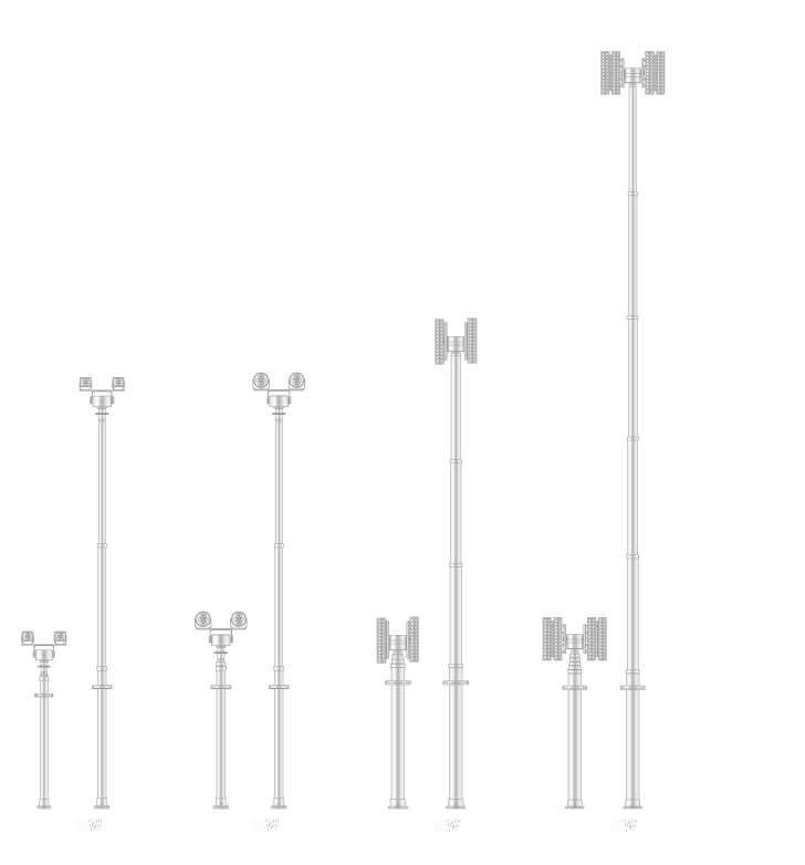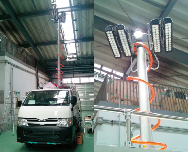 油圧駆動、高強度のポールによるLED照明システム。