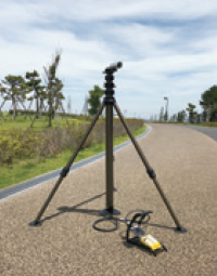 3脚スタンドはそれぞれの足の長さが別々に調整でき、傾斜地でも設置できます。